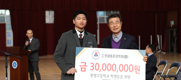 ∙고37회 김철민 동문이 국가의사자로 받은 위로금을 모교 장학금으로 전달 -